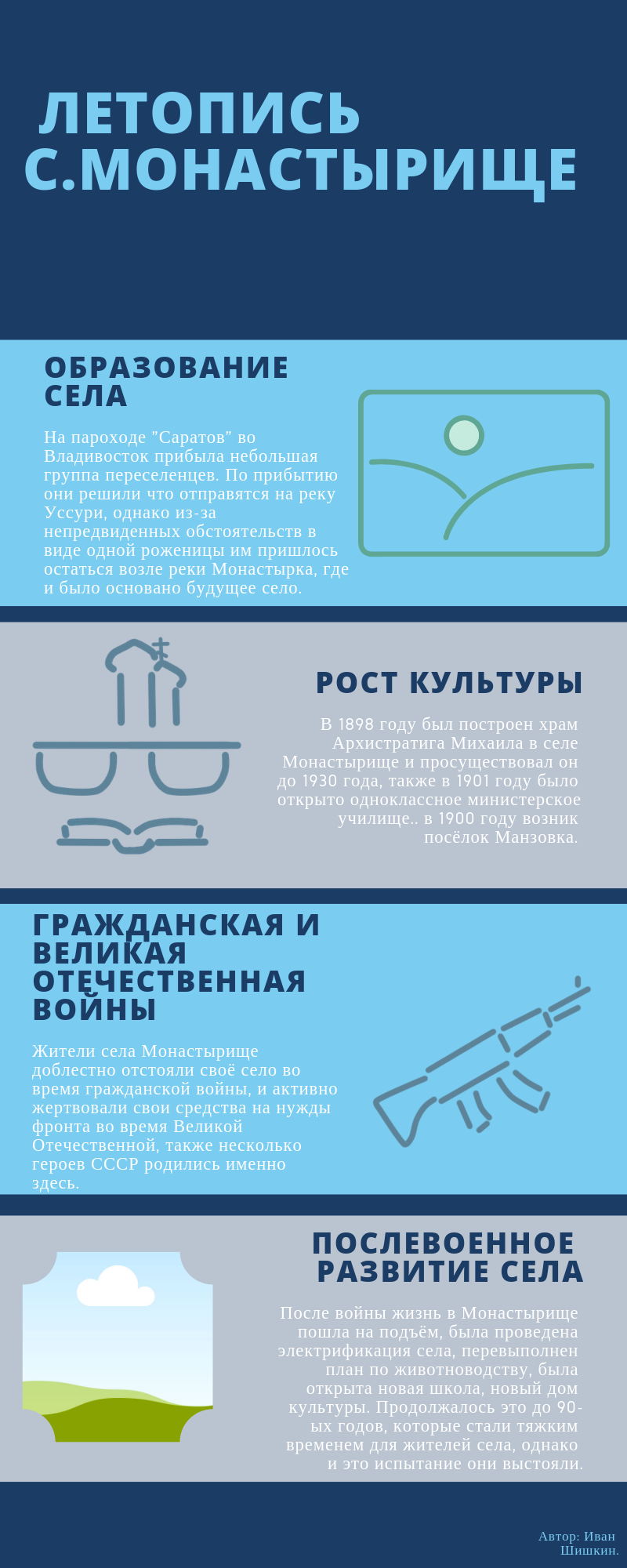После гибели семьи Вялых и Пономаренко в селе осталась группа подпольщиков из 20 человек. Их задача состояла в том, чтобы нанести японцам как можно больший вред. В эту группу входили Алексей и Захарий Якименко, Петр Резниченко. Они помогали партизанам, поддерживали с ними связь. Особой отвагой отличался Петр Резниченко. Это с его помощью взлетел мост, похоронив под своими обломками вагон с японскими генералами. Арестовали его весной 1922 года после того, как он выступил на сельской сходке против японцев. Вместе с ним были арестованы братья Якименко. Всех их увели в неизвестном направлении. В мае 1922 года на покосе одного из крестьян были найдены 3 обезображенных трупа. Только по одежде жители села смогли узнать в них односельчан. Братья Якименко и Пётр Резниченко подверглись зверским пыткам и издевательствам - их кололи штыками и ножами, били прикладами, душили, выкололи глаза и вырезали куски кожи. Так геройски погибли наши односельчане, жители села Монастырище. В честь них названы улицы села и установлен памятник.